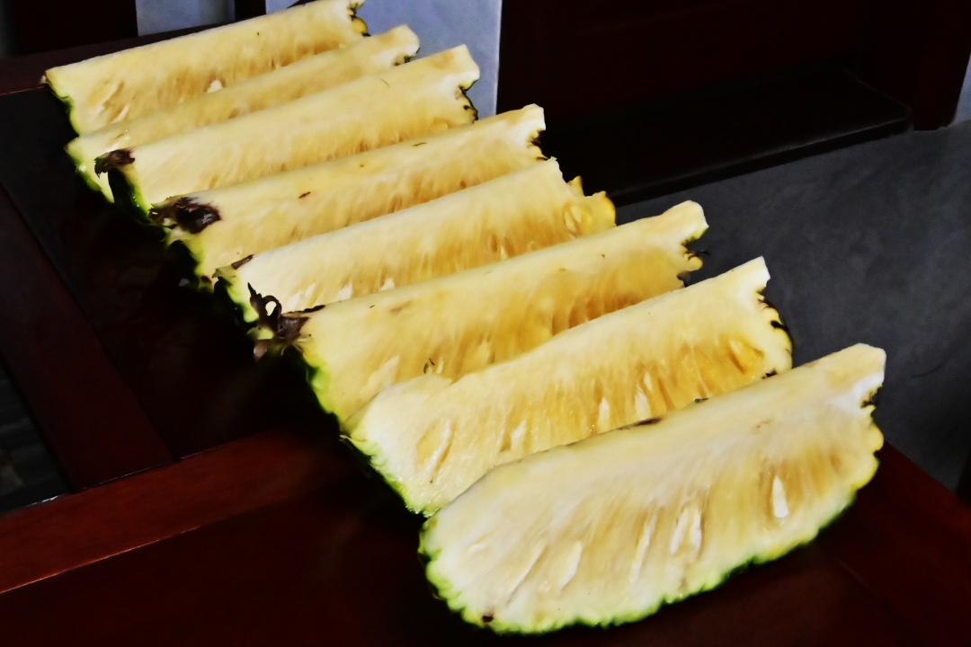 西瓜凤梨切开后,可以像西瓜一样一瓣一瓣来吃。信息时报记者 李绍雄 摄