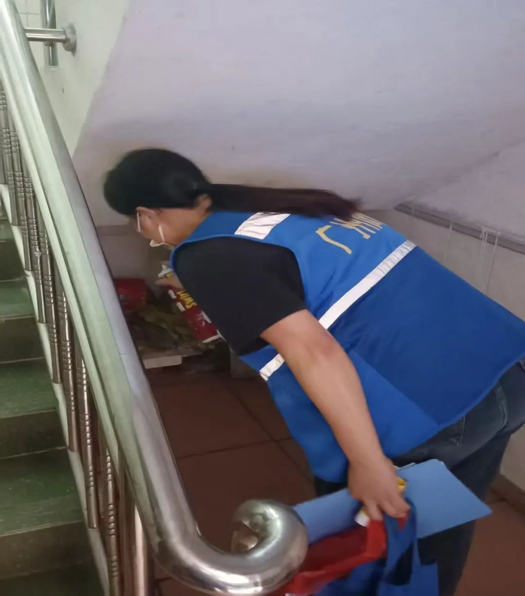 网格员对出租屋的楼梯底、楼顶等