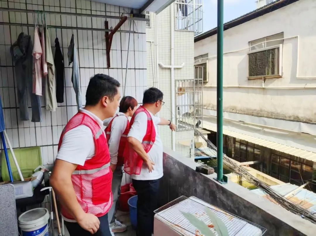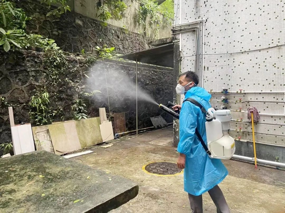 针对大石社区单体楼较多且缺少专门的物业管理,番禺区总工会常务副主席吕自强带领尖刀班成员支援大石社区进行入户宣传“两热”,做好环境卫生整治、翻盆倒罐清积水、清除蚊虫孳生环境等工作。