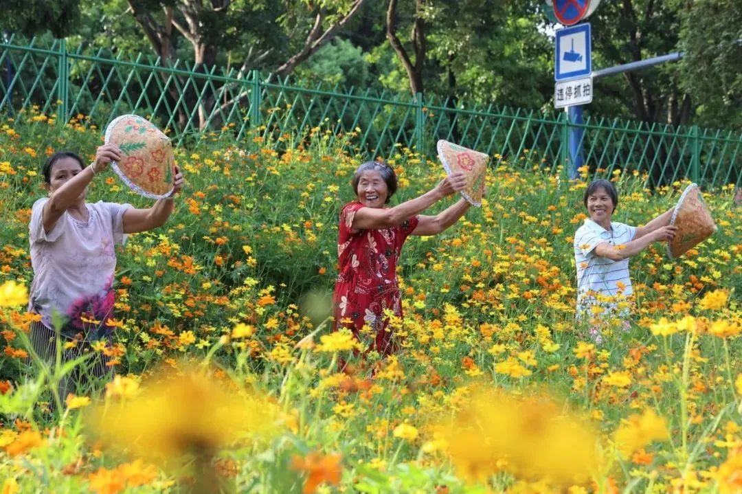 来到东沙古樟树公园,映入眼帘的是一片绚烂夺目的金色海洋——硫华菊迎风怒放,宛如大地的金色锦缎,在阳光下熠熠生辉。微风轻拂,花浪翻滚,馥郁芬芳萦绕其间,引得蜂飞蝶舞,为公园增添无限生机。