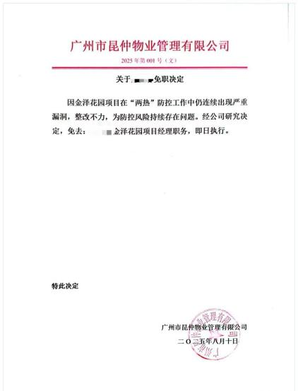 目前该小区物业经理已免职。据悉,该例是增城区开展“两热”防控措施以来,首例因防控不力被免职的物业经理。
