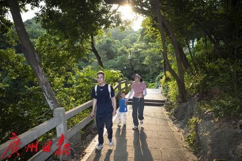 暑假期间,不少家长带孩子爬白云山。
