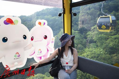 白云山索道缆车上十五运元素抢眼。