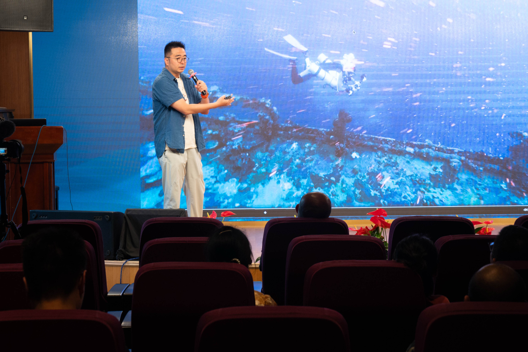 活动现场,饶轩就从自己的潜水经历讲起,生动描述了在菲律宾科隆海湾探索二战沉船的震撼体验。他通过一段水下视频,展示了沉船中的细节,如锈蚀的汽车残骸、储存淡水的巨缸,以及被珊瑚覆盖的船体结构。这些画面不仅让观众直观感受到历史的厚重,也激发了大家对历史细节的好奇心。“历史不仅是书本上的文字,更是可以通过技术亲手触摸的实物。”