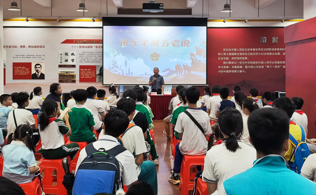 参观展陈后,“银乐羊城五老说”志愿宣讲团成员、广州市民政局党委原委员、广州市民间组织管理局原局长唐国平,为青少年们带来了题为《“一·二八”淞沪抗战 十九路军铸丰碑》的专题授课。他收集史料整理研究,为青少年讲述全国军民团结一心抵御外侮、十九路军淞沪浴血抗日背后的感人故事,特别是蒋光鼐、蔡廷锴、张治中、陈正伦、黄毓全、李荣熙等抗日英烈们慷慨赴国难的壮举,生动诠释了先烈们视死如归保家卫国的爱国情怀与不屈不挠的民族气节。
