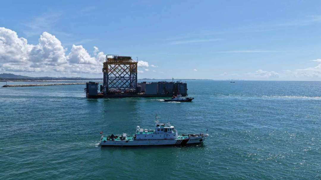 8月10日,粤东最大支腿式(桁架式)重型海洋牧场平台“龙宫号”,在揭阳海事“海巡0965”护航下,从前詹港电码头由巨型驳船“黄船XX”拖带出运至惠来神泉海上风电场海域安全投放,标志着粤东地区海洋渔业向智能型、规模型、环保型迈出了坚实一步。
