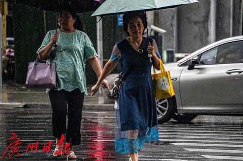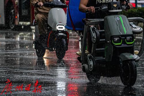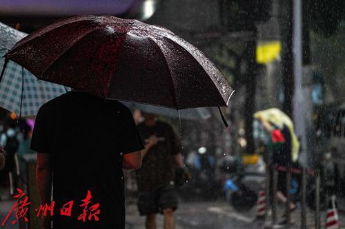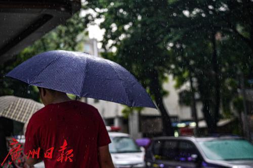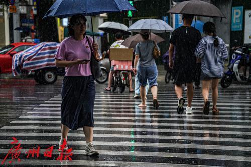 8月11日午后,广州市区一场大雨落下,让短暂维持了三日的晴热高温天气消散。在越秀区,路上行人举伞、骑行者披挂雨具出行,部分没带雨具的行人只能匆忙躲雨。这场雨也开启了这一轮的雷雨天气,据天气预报显示,未来多天都将是有雨天气。