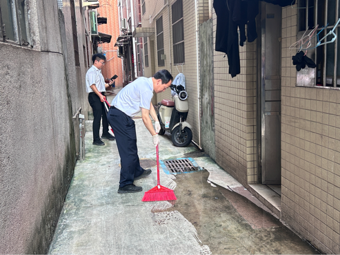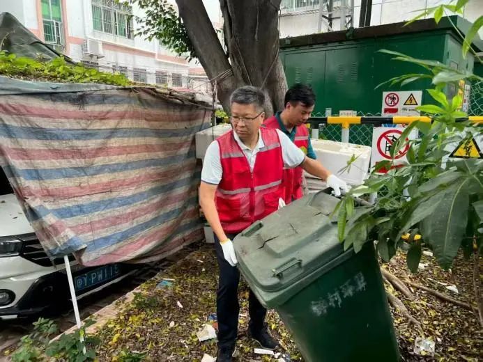 钟村街以“全民参与、全域覆盖”为原则,广泛动员辖内单位,调动员工参与积极性,严格落实“门前三包”制度。各单位全面做好卫生整治、清积水、除蚊虫孳生地等清洁工作。挂点联系区领导带头开展爱国卫生运动,街道全员上岗,组织14个村(社区)“两委”干部、驻村(社区)组、区尖刀班、志愿者及党员群众开展大扫除,聚焦垃圾收集点、地下车库、背街冷巷、绿化带等重点区域清理杂物,及时清除路面坑洼积水,对暂无法清除的区域投放药剂,从源头遏制蚊虫滋生。