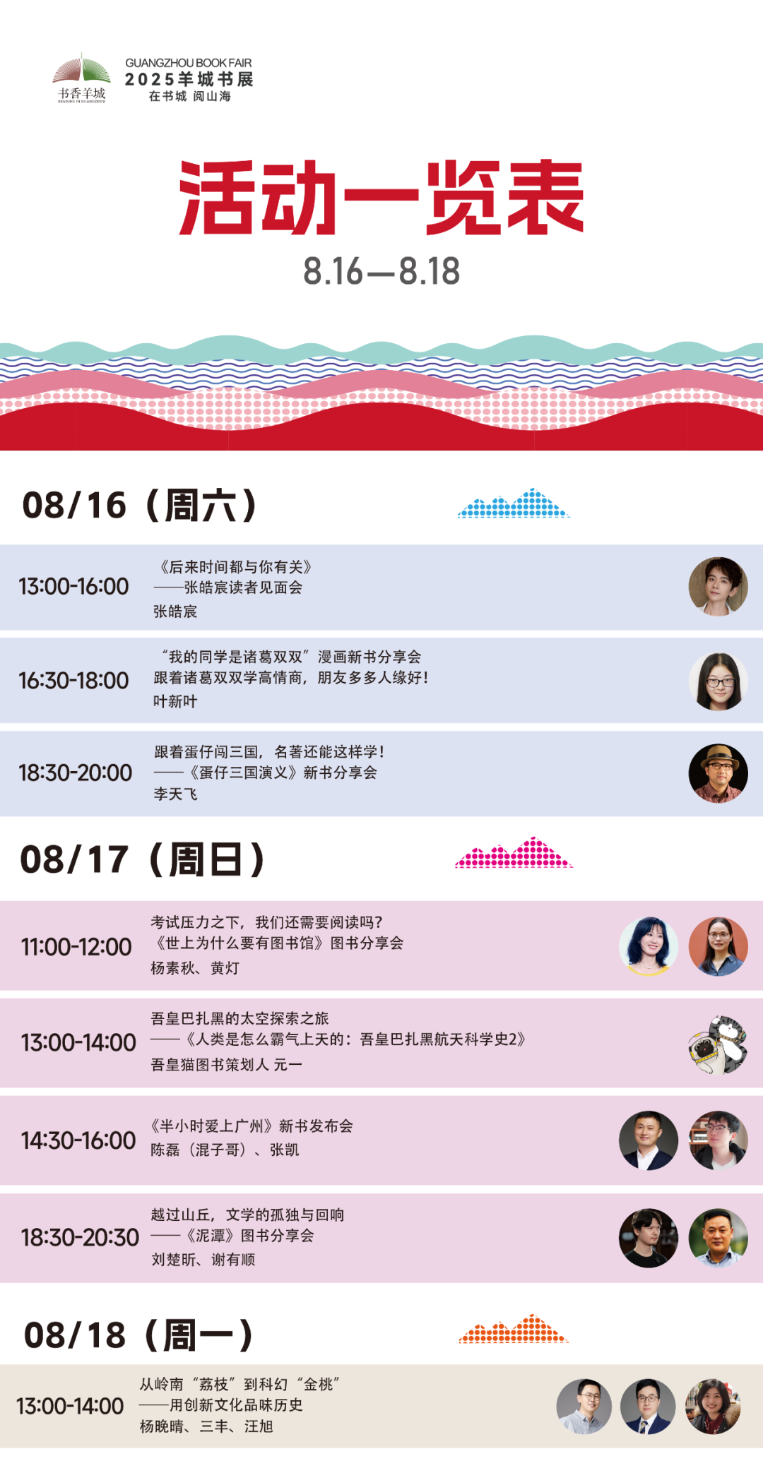 8月16日下午,青年作家张皓宸将携新版《后来时间都与你有关》亮相签售台,与读者分享九篇故事背后的情感与思考,小说与手账交织成时光标本,等你来封存那些“与你有关”的怦然心动。17日,混子哥将携新书《半小时爱上广州》举办发布会,通过漫画的形式,带领读者触摸广州的城市文化脉搏,开启一场“半小时爱上广州”的奇妙之旅。