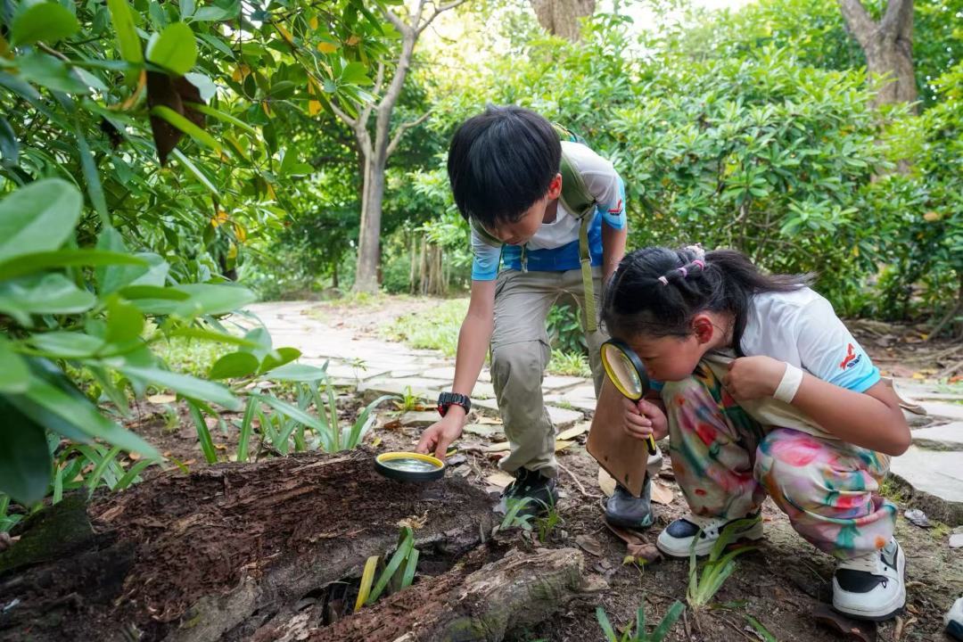 “快看!这只瓢虫背上有七颗星星!”“白蚁的房子原来是一行一行的!”这个夏天,广州海珠湿地变成了孩子们的“自然实验室”,十多名小博物学家在这里开启了一场充满童趣与探索的夏日大冒险。正值暑假,广州海珠湿地自然学校夏令营如期而至,玩泥、追虫、观鸟,学员们踩过湿润的泥土,用放大镜追踪瓢虫的爬行轨迹,在果林里破解甜蜜的生物密码……每一天,湿地都化身不同主题的奇幻课堂。