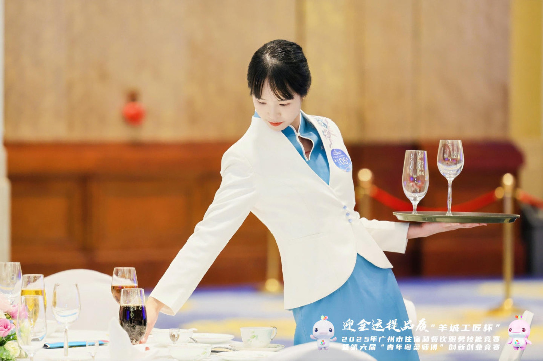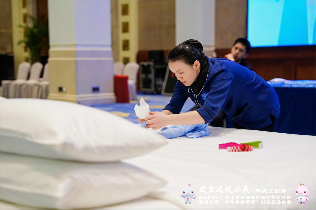 “办好一个会,提升一座城,彰显一座城,幸福一座城”。近日,“迎全运、提品质”2025年广州市住宿和餐饮服务技能竞赛举行,餐厅服务员(中式摆台)、餐厅服务员(西式摆台)、客房服务员三个赛项同时开赛,以竞赛为引擎和标杆,推动全运盛会服务保障升级。