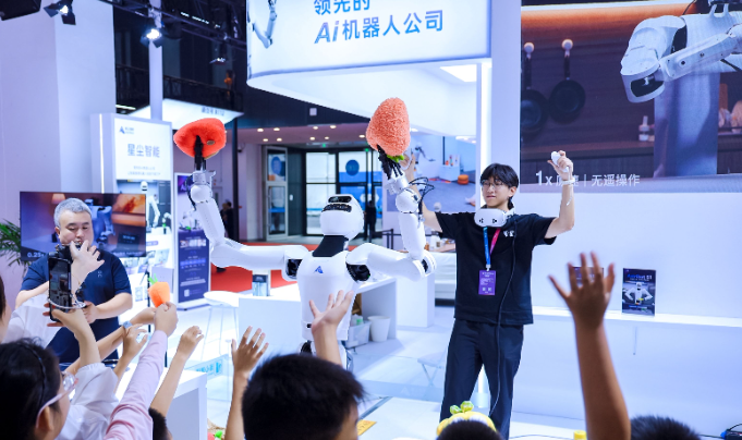 星尘智能携Astribot S1参展,Astribot S1在“一日机器人伙伴场景区”中,演示生活管家、商业助手、文化共创等能力;“真机遥操区”开放全民体验,让公众体验低延时遥控与力控反馈;“AI演示区”,则揭秘了“本体+数据+模型”闭环体系,展现机器人自主决策与适应能力。