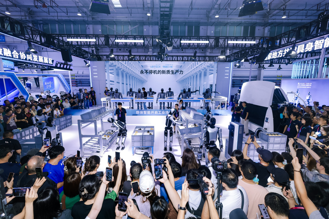 现场演示人形机器人群体智能技术,实现多机协同搬运、分拣全流程作业;自主研发的家庭智能机器人AI悟空在国内首次亮相,具备数字生命内核。