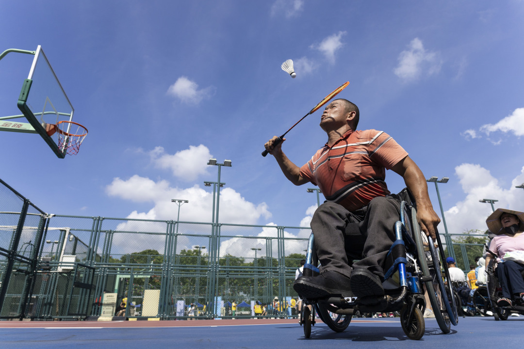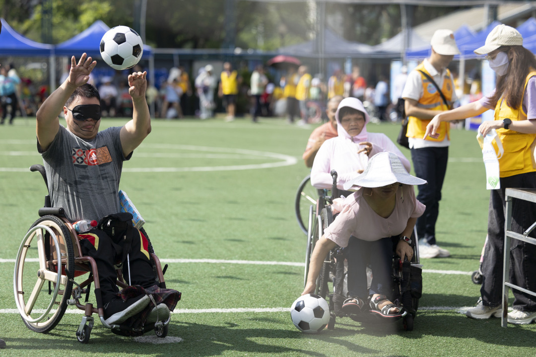 启动仪式结束后,残特奥项目与群众推广项目体验环节在公园内热烈展开,二沙岛体育公园变成了充满欢声笑语的“运动乐园”。在十五运会和残特奥会项目体验区,气排球回球挑战、气排球颠球挑战、盲人门球、篮球投篮挑战、篮球运球挑战、乒乓球颠球挑战、乒乓球运球挑战、夹乒乓球挑战、旱地冰壶趣味挑战等项目,让残疾朋友们充分感受专业赛事项目的魅力,他们积极尝试,相互鼓励,在挑战中不断突破自我。担任篮球投篮挑战裁判的市民姚女士热情投入,为大家欢呼加油,鼓励大家积极参与活动:“运动不仅能锻炼身体,还能让残疾人朋友走出家门,结识新朋友。”