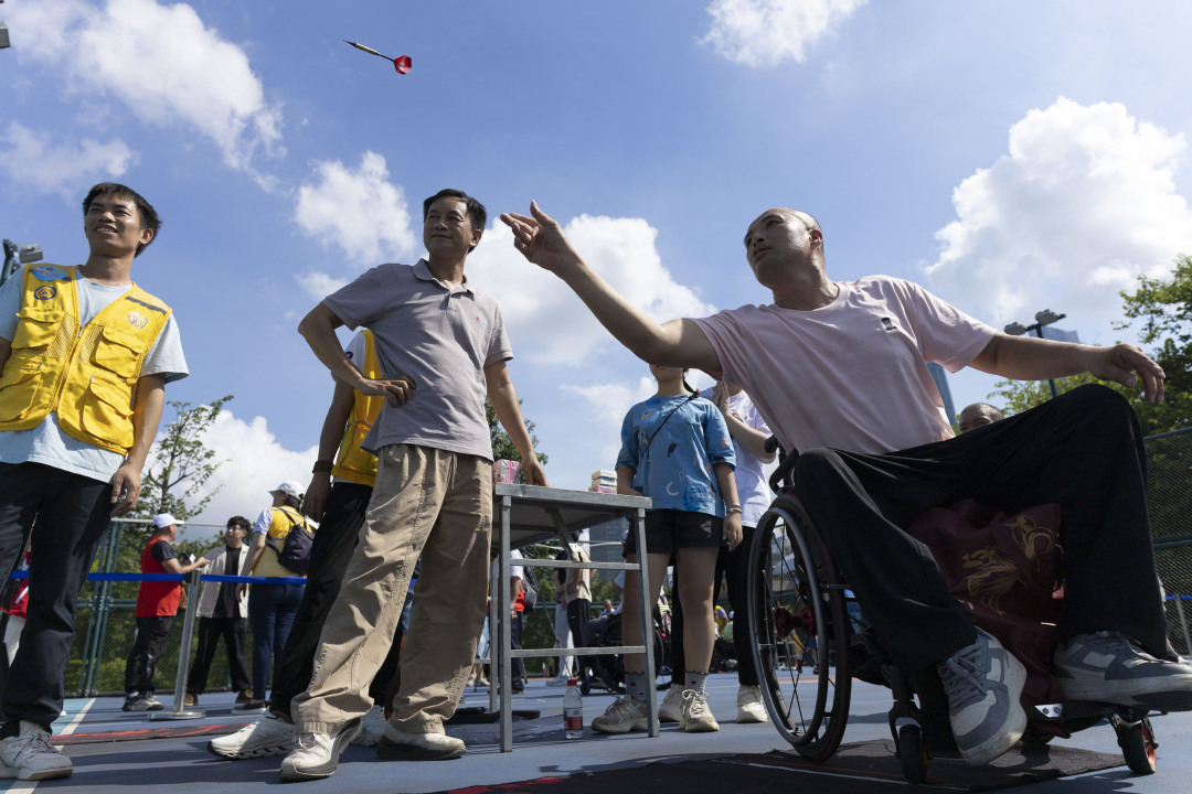 飞镖粘粘球挑战、羽毛球颠球挑战、飞盘九宫格、腰间抖球挑战......8月12日上午,二沙岛体育公园热闹非凡,来自广州市各区的近200名残疾人朋友正在此参加一场“喜迎2025残特奥会开幕倒计时100天宣传活动暨广州市残疾人群体运动、特奥嘉年华”。“倒计时的数据在减少,我们的力量在汇聚。”现场一句简单的发言,让烈日下的残疾人朋友和志愿者动容。
