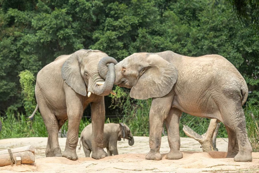 此外,非洲象是陆地上最大的哺乳动物,已被列入《世界自然保护联盟濒危物种红色名录》。根据中非动物保护合作相关计划,2015年7月,20多头被遗弃的非洲小象被救护到清远长隆国家级世界珍稀野生动植物种源基地(以下简称“清远基地”)安家。目前,清远基地生活着30多头非洲象,成为国内最大、最活跃的非洲象迁地保护种群。同时,清远基地还建立了多项有关环境、营养、健康、疾病预防等方面的标准,填补了中国大种群迁地保护非洲象的多项空白。