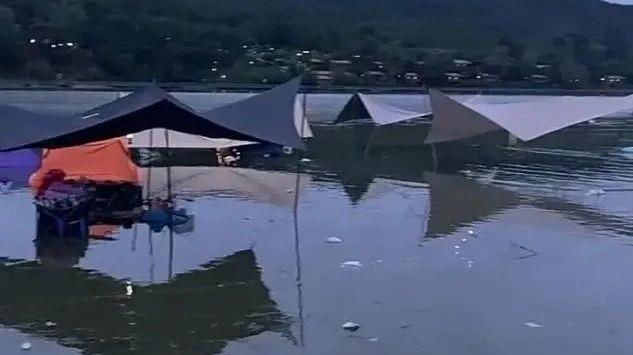 △水位上涨 帐篷、天幕泡在水里(图源:应急管理部)
