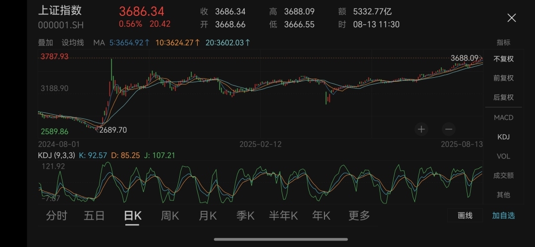 8月13日,A股三大指数集体走高。上证指数早盘再次上攻,突破去年“924”行情的高点3674.40点,创2021年12月以来新高。突破前高后,沪指一路震荡走高直逼3700点,创业板指大涨近3%。