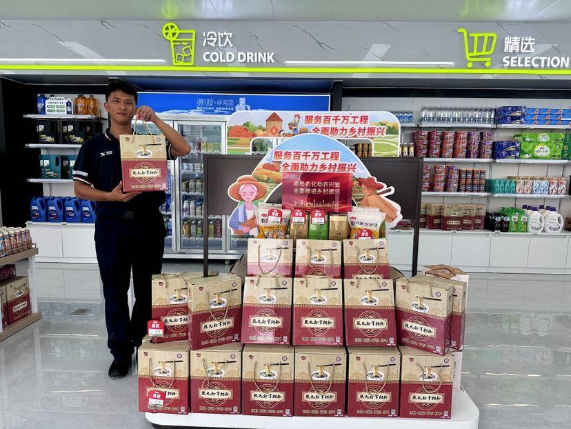 新油站占地面积约9100平方米,可同时为32辆车提供加油服务,供应92号、95号、98号汽油及0号柴油,供油均达国VIB质量标准,属二级加油站。站内设有“司机之家”、易捷便利店等设施,店内货架陈列了“九龄故里”的特色农副产品、日用品、零食等500余种产品,还提供免费充电插座、医药箱等服务。