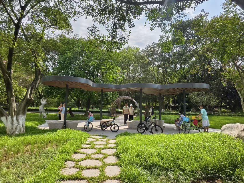 文化广场南侧的音乐广场也全新亮相,新建的廊架、石材坐凳、花架及绿意盎然的绿地等一一呈现。两个广场交相辉映,成为大夫山森林公园南门半岛一道兼具生态美与生活味的亮丽风景。