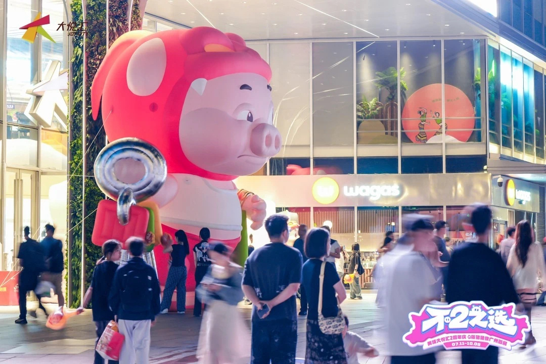 越秀区北京路商圈的喜羊羊与灰太狼20周年快闪、天河路商圈的K11童年回忆“100%哆啦A梦&FRIENDS巡回特展”、天环广场“当红炸子鸡”LABUBU、正佳Chiikawa主题快闪、黄埔大悦汇的猪猪侠二十周年全国巡演嘉年华首展……二次元IP展遍地开花,圈内人士称之为国内“痛”(动漫IP元素与城市景观融合)城顶流亦不为过。