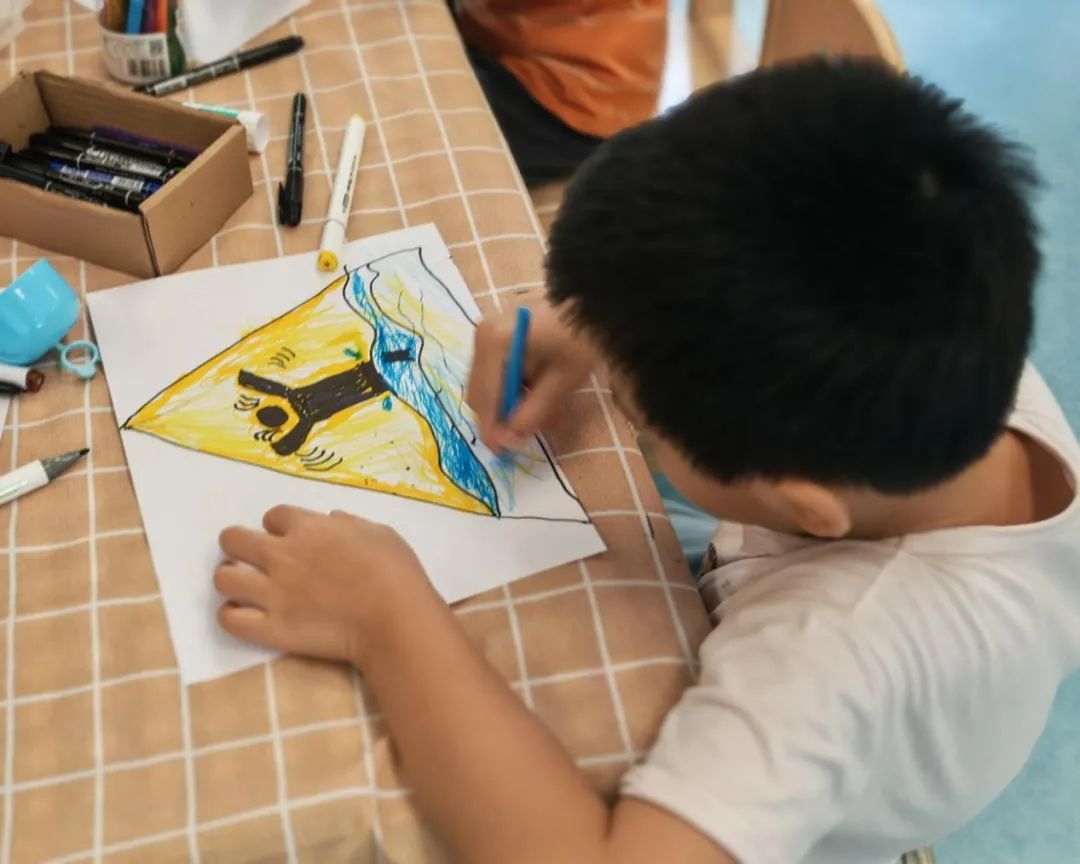 “视频里的小河为什么变脏啦?”“因为有垃圾扔进去了!”“能不能独自去河边玩?”“不能!”互动问答环节,孩子们争先恐后举手回答,稚嫩的声音里藏着朴素的环保与安全意识。随后的“创意警示牌设计”环节,更是将活动推向高潮。孩子们拿起彩笔和卡纸,画出心中的防溺水提醒:有的画红色圆圈和禁止符号,配文“不能独自到河边”;有的画小朋友牵着大人的手,写着“要和大人一起”;还有的画波浪线和水滴,配上哭脸小鸭和“水深危险”的警示。