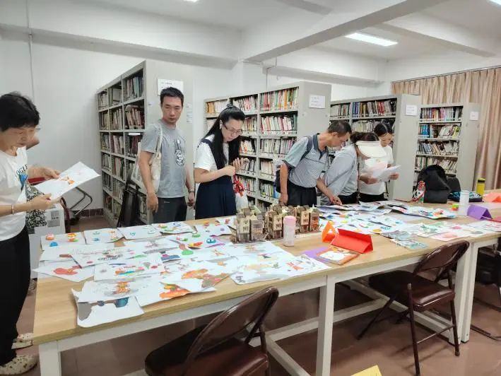 结营仪式上,家长欣赏孩子们的手工及绘画作品。