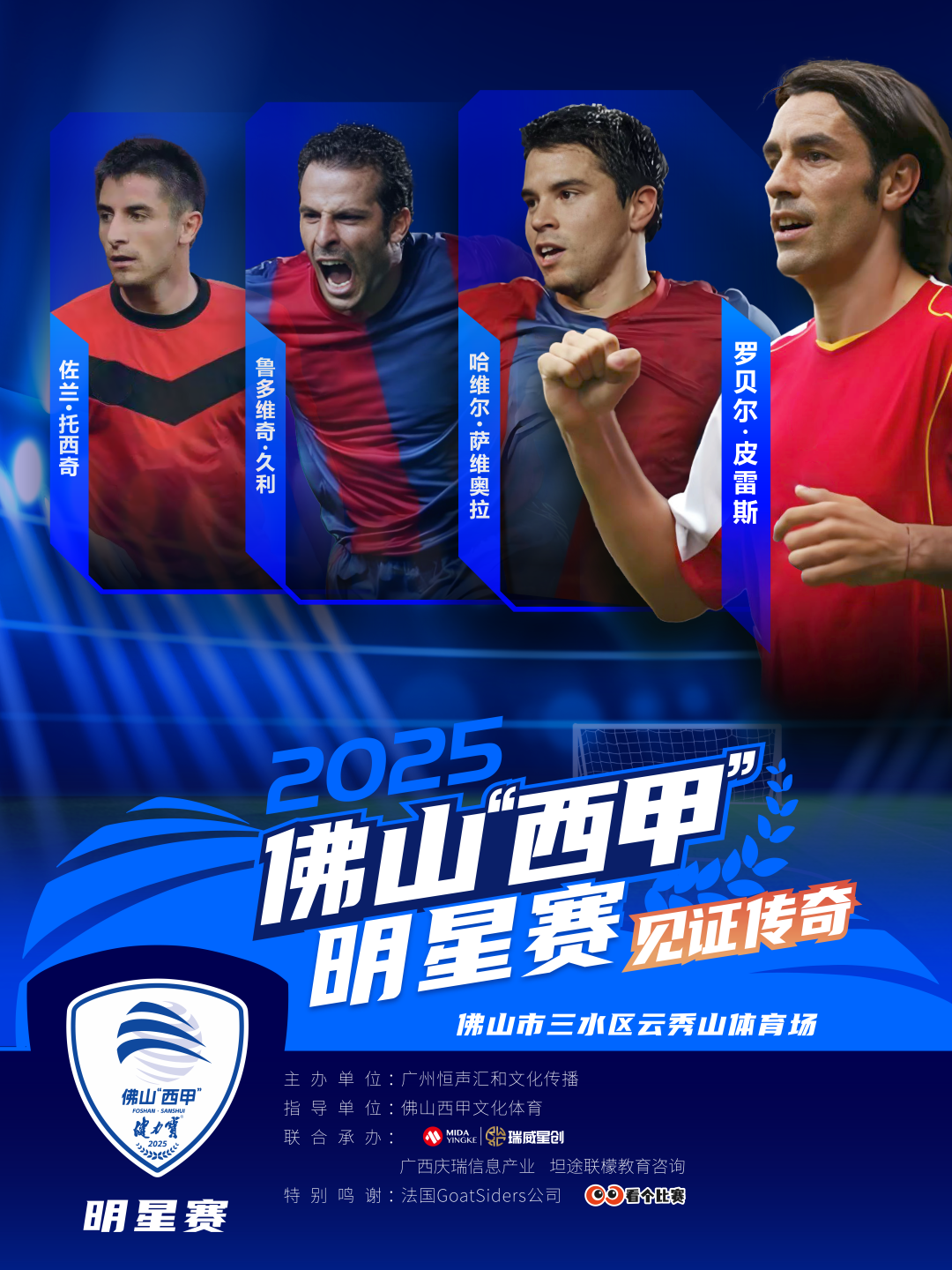 皮雷斯、薩維奧拉、久利、托西奇……一個個閃耀國際足壇的傳奇巨星即將重磅登上佛山「西甲」的綠茵場!8月16日晚,在佛山市三水區雲秀山體育場,將盛大舉辦2025佛山「西甲」明星賽,多位球迷的青春記憶裏馳騁全球頂級賽事、書寫不朽綠茵傳奇的國際足壇巨星,將在雲秀山重新披掛上陣,一展風采。由國內足壇名宿攜手佛山「西甲」本土球星組成的隊伍,將代表中國佛山足球的榮耀與力量,在家鄉父老面前,與國際傳奇一較高下。