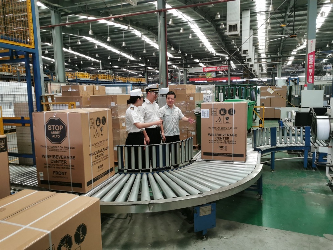 广州海关所属从化海关关员在冰箱出口企业调研。