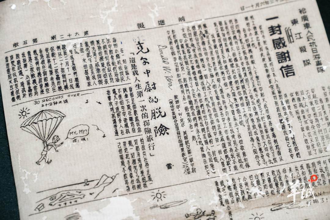 1944年6月11日《前进报》上刊载报道《克尔给广东人民抗日游击队东江纵队的一封感谢信》及《克尔中尉的脱险》
