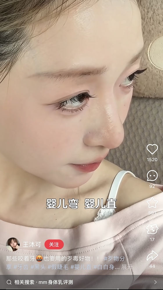 记者看到,目前社交平台上“歹物分享”的内容主要以化妆品、日用品和小家电等为主。比如,“@王沐可”在其“歹物分享”视频中提到了假睫毛、漱口水、洗发水等,这些都是日常中比较常见的物品。该博主表示,某款假睫毛是她的“梦中情睫毛”。“戴上这款假睫毛,会让人看上去非常灵动。这款假睫毛又不会很翘,眼尾的地方还带点小狐系。它的歹毒之处在于很扎眼睛,就像戴着劣质美瞳一样。我每次戴的时候,眼睛里的红血丝都很多。”