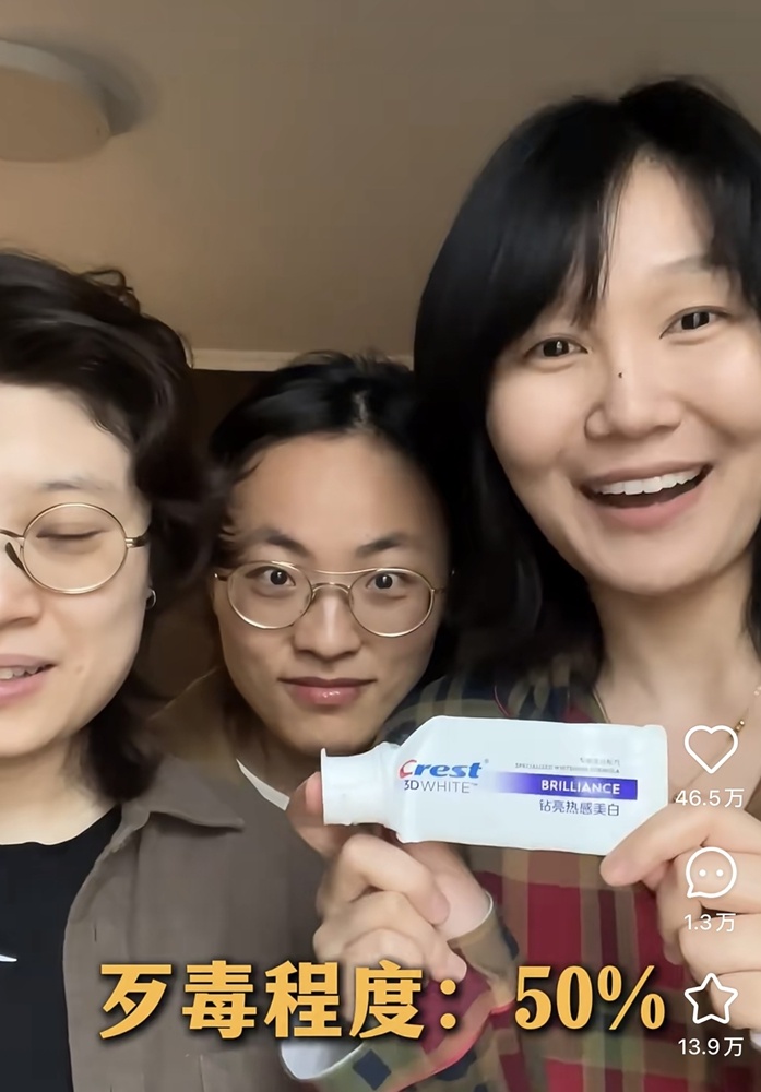更让人意外的是,还有消费者被这一“歹物”反向种草了。网友Angela表示,“我就是看完这条分享买了佳洁士牙膏。白的紫的都试了,紫色的美白效果更明显。”还有不少网友在该视频下跟帖称:“坏了,真被反向种草了。”