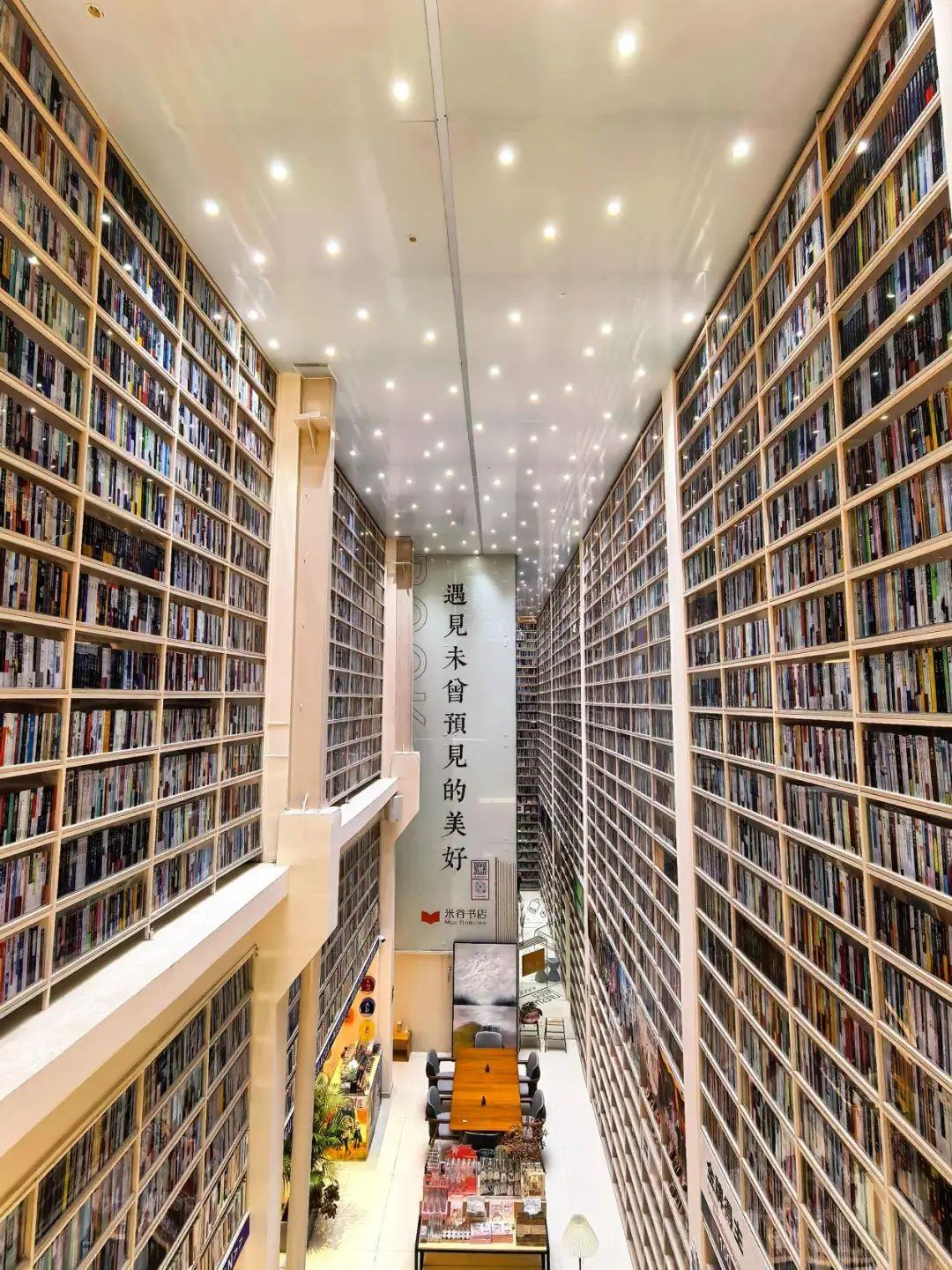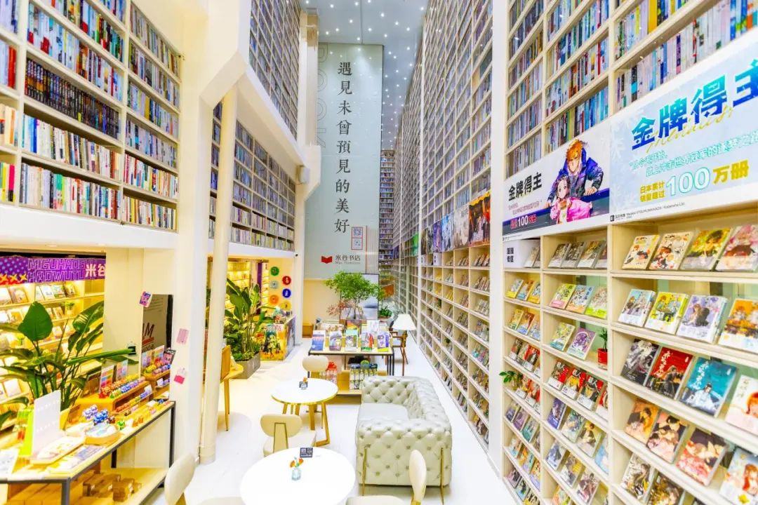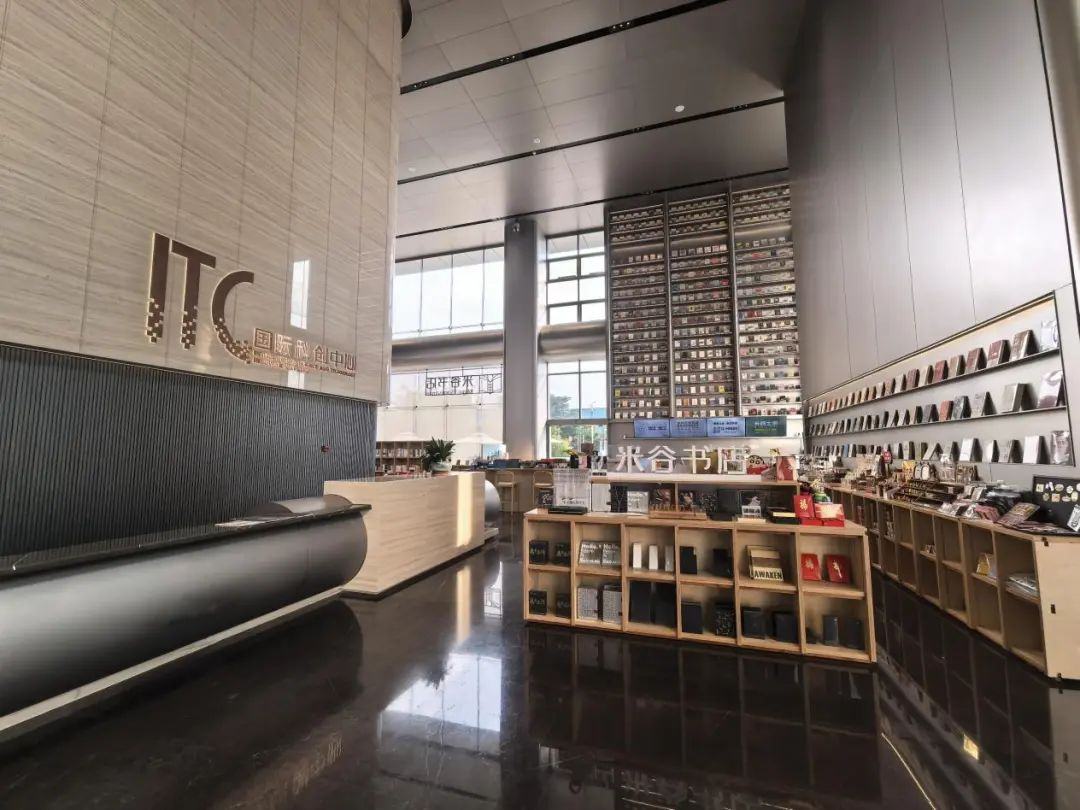 在万博商务区ITC 国际科创中心的玻璃幕墙后藏着一处特别的所在——米谷书店。13米高的大堂,开放式书架,柔软沙发嵌在书架间隙,咖啡吧台飘出的香气与纸张的气息缠绵交织。