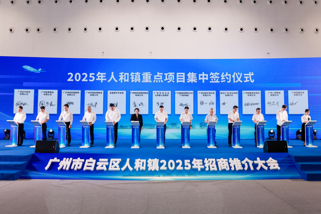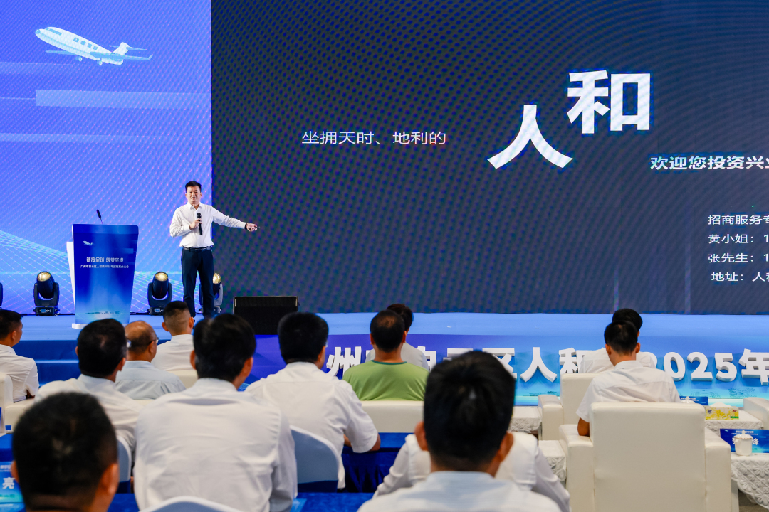 8月15日,2025年广州白云区人和镇招商推介大会在广州空港博览中心举行。本次大会以“链接全球 筑梦空港”为主题,旨在全面展示人和镇产业用地资源与优质物业载体,通过重点项目签约、全球招商项目发布等举措,加速镇域经济高质量发展与港产城融合升级。广州空港委、白云区有关部门、人和镇相关工作人员,以及白云国际机场股份有限公司等优质企业代表等250余人出席,活动现场还特别邀请了贵州省黔南州及平塘县有关负责人进行推介。