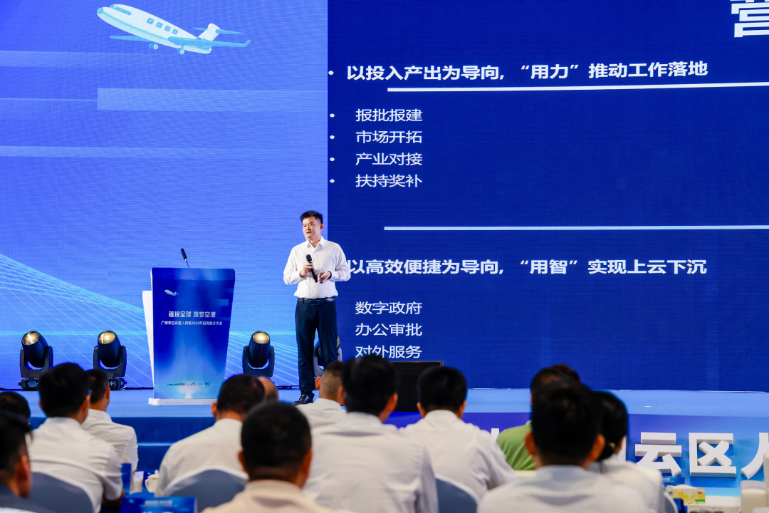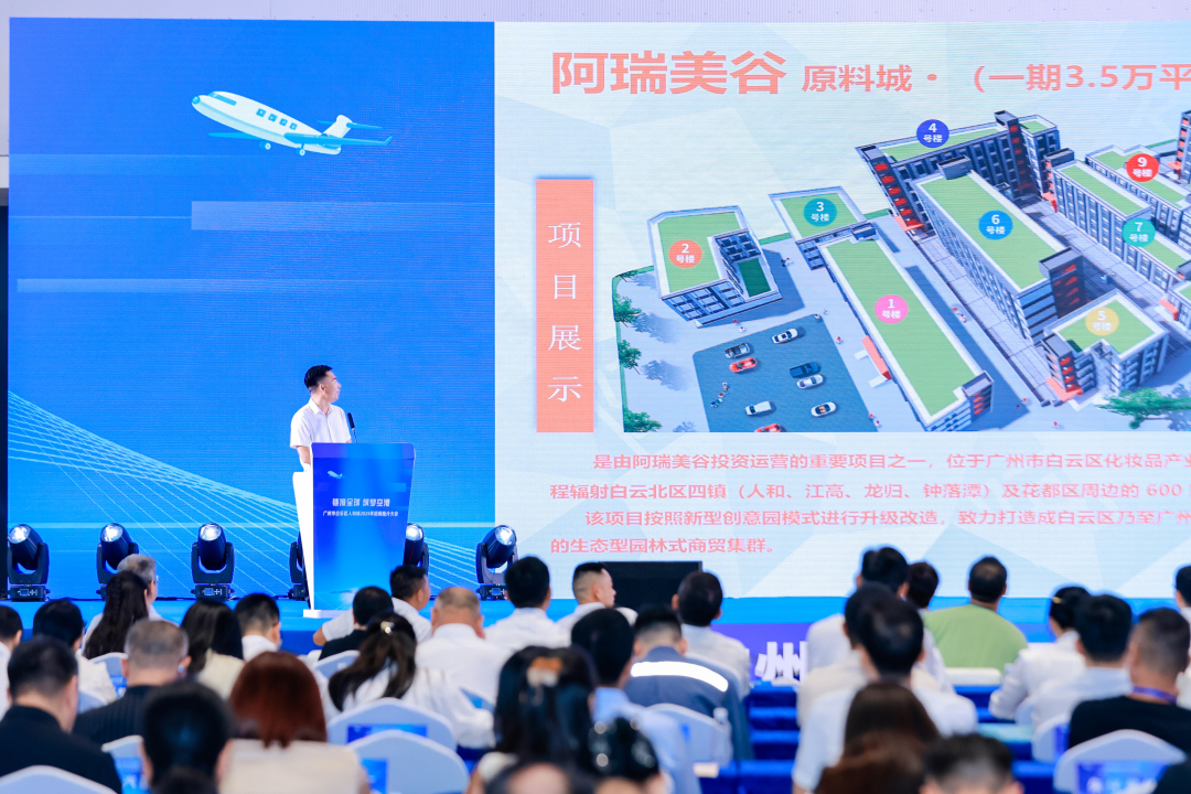 推介环节中,人和镇重点介绍了丰富的产业发展资源,包括村集体留用地、国有用地等土地资源,机场西南商务区、T3临空产业园、阿瑞美谷城、广州翼·空港文旅小镇、正信智谷产业园、南国工业园等重点产业载体,同时还展示了来自贵州省黔南布依族苗族自治州平塘县的特色农产品,彰显了“港、产、城、农”多元融合的发展格局。