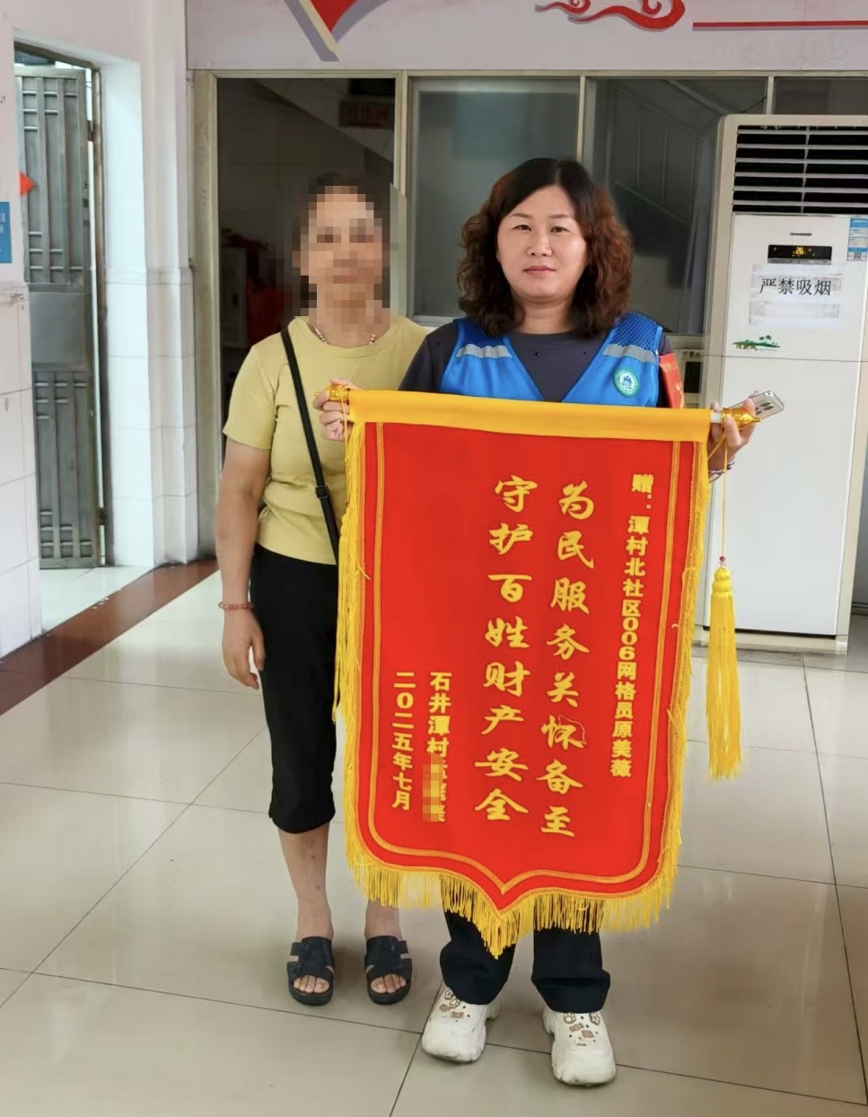 到达现场后,工作人员立即敲门示意,但被诈骗分子远程操控的事主起初并不相信自己正身处骗局。凭借丰富的反诈经验,民警与网格员、治保队员持续耐心劝导,结合近期类似案例剖析诈骗手法,最终成功突破事主心防,阻止其即将完成的转账操作,事主账户近十万元的存款得以保全。事后,事主将一面锦旗送到原美薇手上,以感谢当日所有工作人员的及时劝阻。