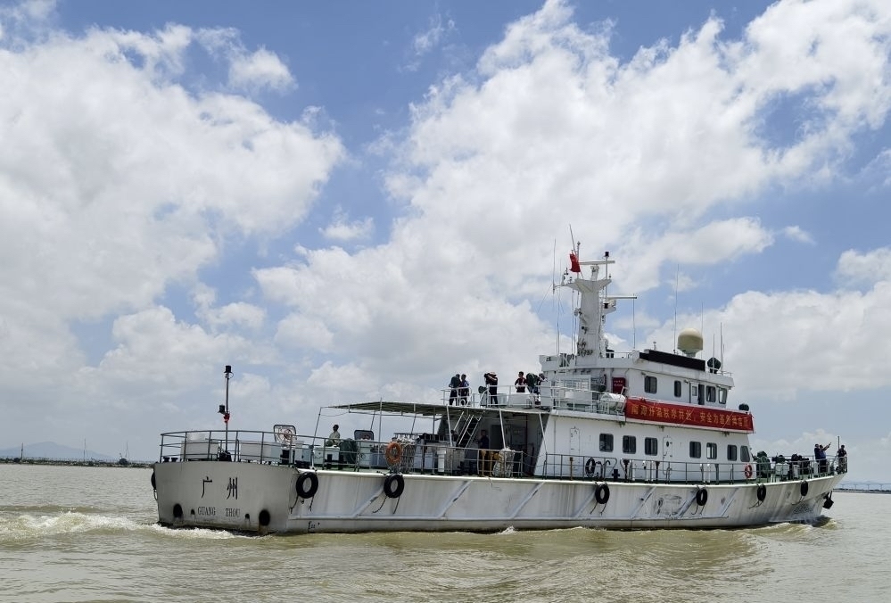 中午12时整,停泊在狮子洋龙穴南水道和南沙大桥下的数百艘渔船同时鸣响汽笛。在渔政执法船的引导下,渔船依次开足马力,从狮子洋沿珠江口驶向南海海域。蔚蓝的海面上,千帆竞发的壮观场景引得岸上群众驻足拍照。