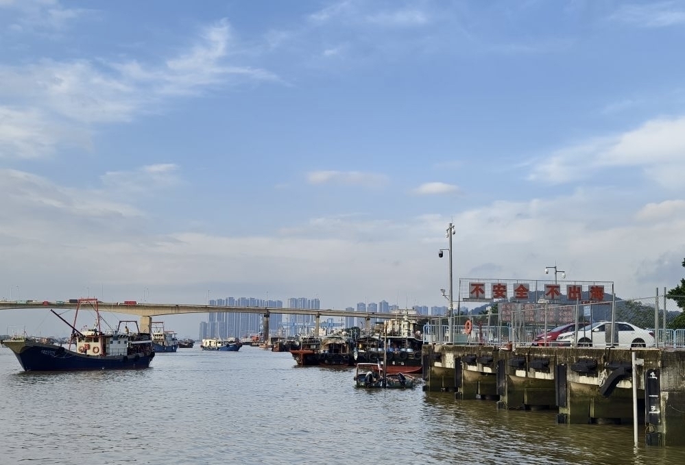 今天早晨7时多,记者在番禺区莲花山中心渔港看到,多艘渔船停泊在这里,渔民们正忙碌地进行出海前的准备,整理渔网、检查发动机、准备早餐,筹备出海期间的大米、食用油、蔬菜等生活必需品,保障海上作业期间的饮食供应。与此同时,记者看到陆续有渔船开往南沙大桥方向水域。