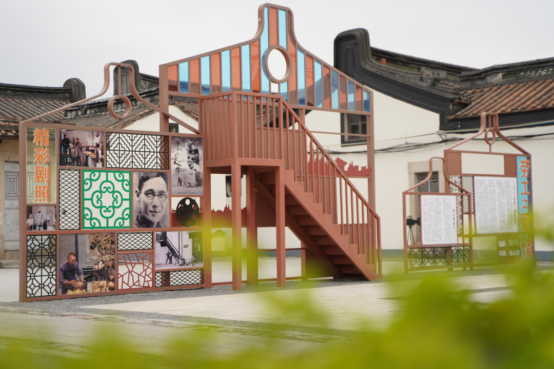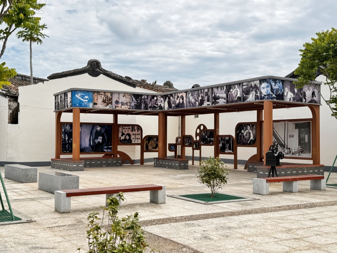 电影文化广场、胶片步道、电影长廊……走进上盐村,仿佛置身于电影的世界。电影文化广场中央,巨型胶片雕塑直指苍穹;胶片步道上,中国电影的足迹清晰可辨;电影长廊里,经典海报与剧照铺就时光隧道,带人穿梭回往昔岁月。村口“中国电影之父郑正秋故里——上盐村”的标识,如同一盏明灯,照亮了这个小村在中国电影史上的特殊坐标。