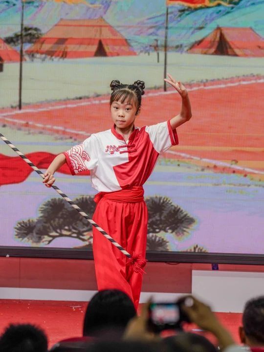 少年亮相展风采——《春日郊游》的灵巧、《沙家浜》的豪气,《易水送荆轲》的悲壮、《杨排风》的飒爽……经典折子戏轮番上演,小营员们竞相展示对粤剧的热爱与执着。