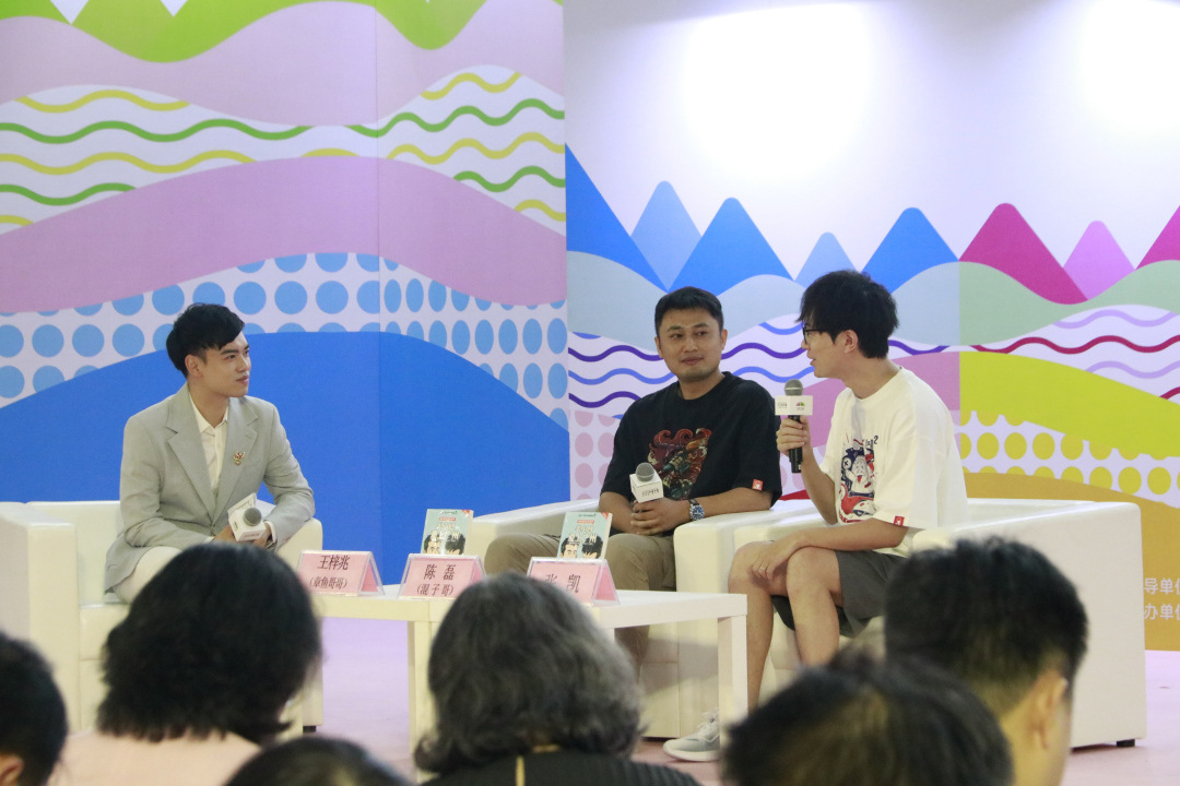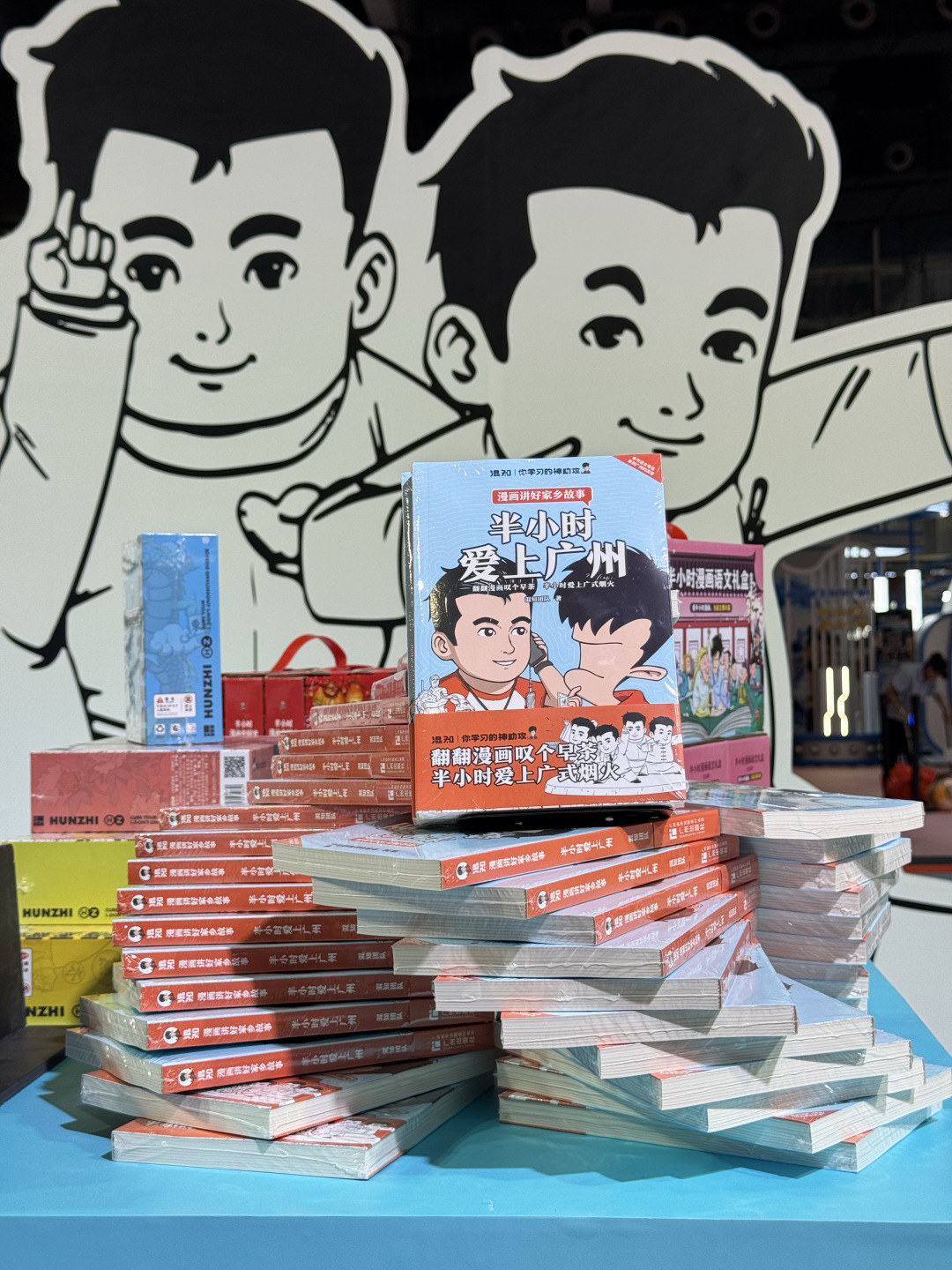 “快来看混子哥!”“漫画里的广州太可爱了!”在人潮涌动的羊城书展主会场,很多学生早早等候在主舞台这里,有的小学生用电话手表通知同伴快点来——陈磊带领的混知团队携专门为广州创作的新书《半小时爱上广州》精彩亮相。