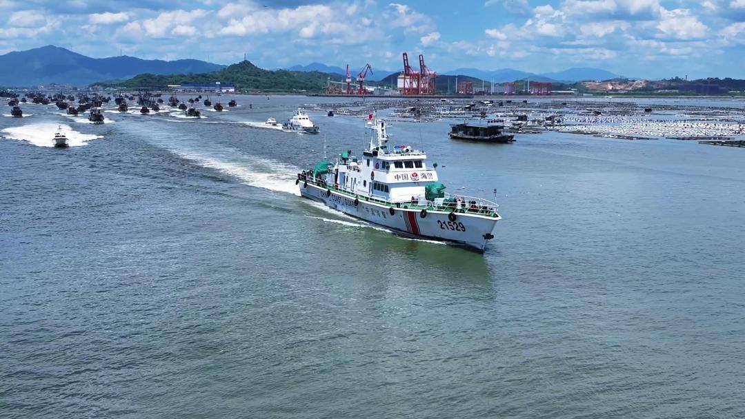 同时,针对开渔首日渔船集中出海的特点,该局提前研判海域通航态势,派出执法舰艇编队提前驻守在重点出海口,采用“大船驻守+快艇巡航”的模式,严查“抢跑”出海、违规捕捞等行为,通过高频广播、现场宣贯等方式,提醒出海作业渔船做好“杨柳”台风过境后防风防汛工作,在重点海域开展巡逻护航,确保渔船航行安全、有序离港。