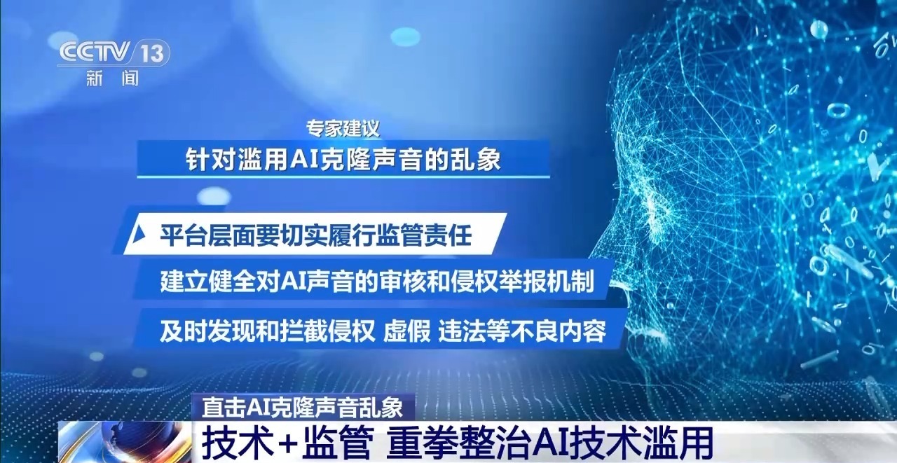 专家建议,针对滥用AI克隆声音的乱象,平台层面要切实履行监管责任,建立健全对AI声音的审核和侵权举报机制,及时发现和拦截侵权、虚假、违法等不良内容。