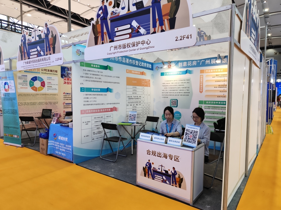 广州市版权保护中心在跨境电商交易会设立“创意花房”广州展会版权工作站,通过提供一站式版权公共服务,提供现场版权法律知识咨询、版权登记、登记资助业务办理等服务,引导企业树立尊重和保护版权意识,遵守版权法规,开展版权合规经营,降低侵权风险,让企业在跨境贸易中更有底气,以版权赋能推动“中国制造”向“中国创造”的价值跃升,助力企业出海远航。