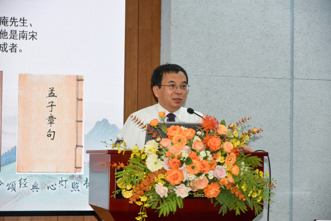 在主题分享环节,柳恩铭博士以“AI时代更需要‘四书’的生命情感智慧”为题,结合现代社会科技高速发展的背景,探讨了《大学》《中庸》《论语》《孟子》中蕴含的修身智慧与情感哲学。他指出,在人工智能日益普及的今天,儒家文化所倡导的“仁爱”“中庸”等思想,恰恰能为现代人提供精神指引,帮助人们平衡科技与人文的关系。