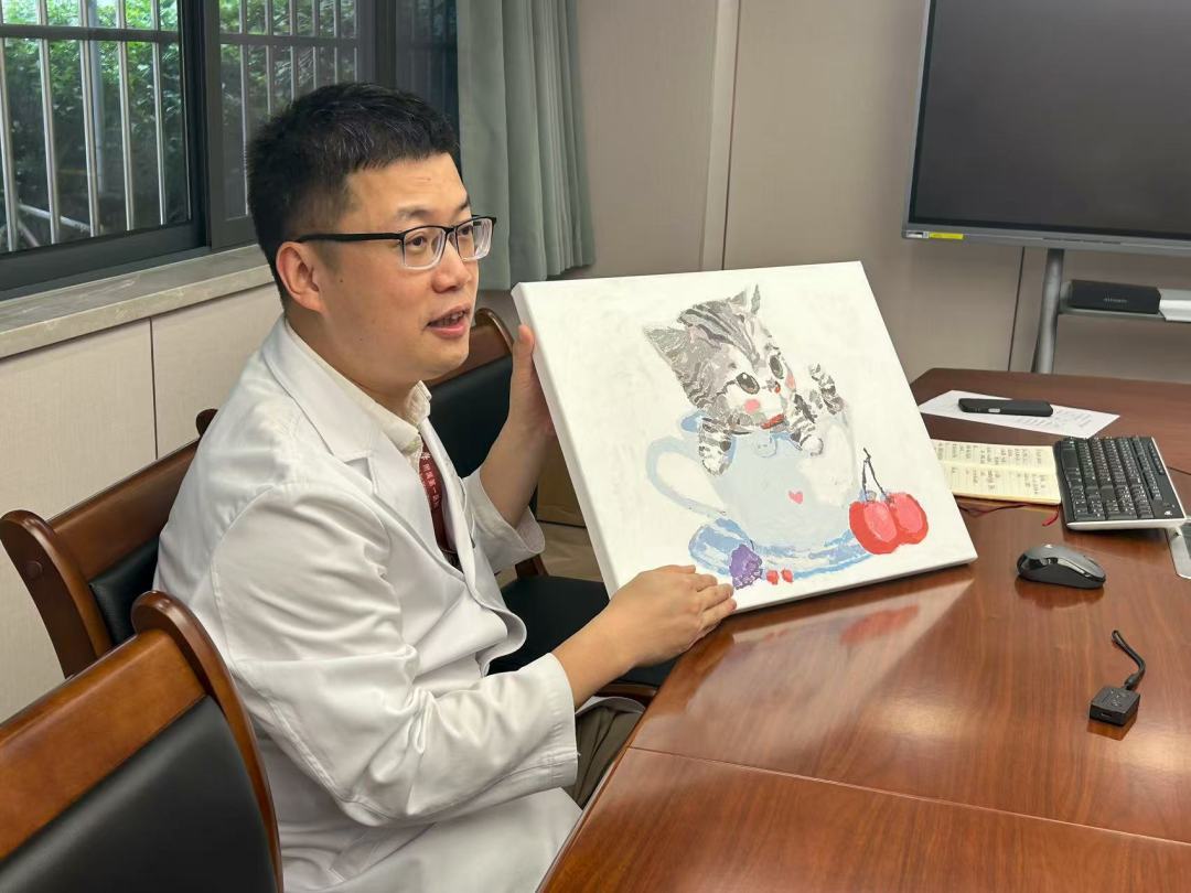 黄礼彬从事儿童血液病肿瘤的医教研工作,他工作中一个很大的“对手”就是大家常听说的白血病。在黄礼彬的办公室里,放着很多孩子制作的感谢礼物,其中有一幅画作背后的故事他记忆犹新。