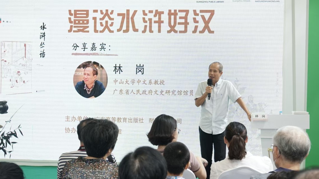 8月17日下午,《水浒丛话》新书分享活动在广东省青少年学生读书行动展区举行。受广东高等教育出版社、耐读文化空间邀请,中山大学中文系教授林岗带来公益阅读活动“漫谈水浒好汉”,为广大读者解读水浒人物。