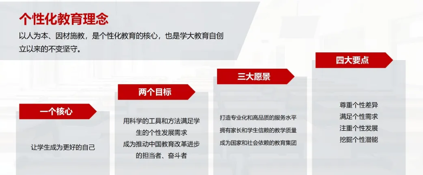 学大教育创办24年以来,始终坚守“以人为本、因材施教”的个性化教育理念,并将其贯穿于公司全局业务的方方面面。