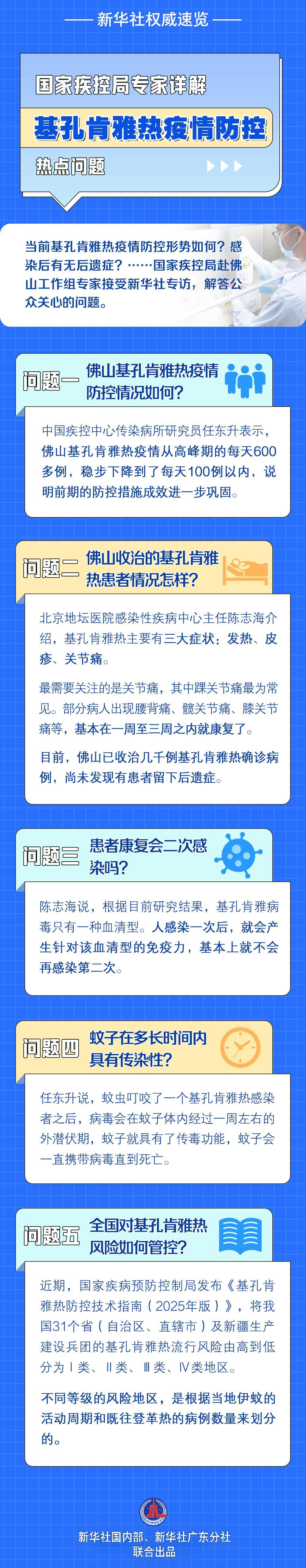 当前基孔肯雅热疫情防控情况如何?感染后有无后遗症?感染病毒的蚊子有何特性?全国有何防控举措?……国家疾控局赴佛山工作组专家接受新华社专访,解答公众关心的热点问题。