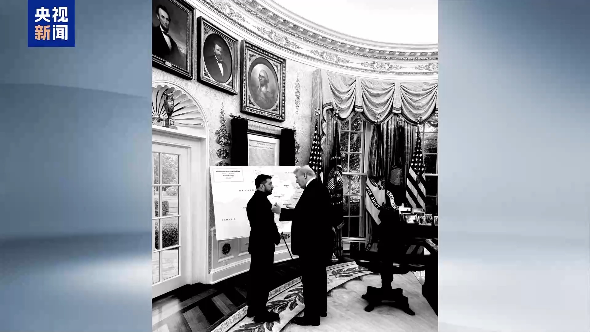 此外,根据媒体发布的现场照片,特朗普与泽连斯基在白宫椭圆形办公室会晤时,白宫展示出一张地图,二人在地图旁边观看。